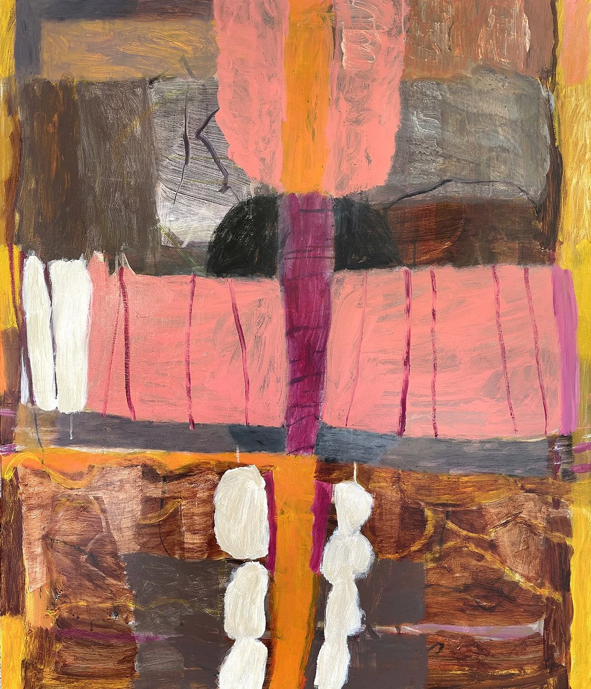 Miller’s new works are expressive abstract paintings that sing with an experimental colour palette; they are simultaneously energetic and soothing. Each painterly composition is abuzz with brushstrokes in every direction, anchored within a loose puzzle of shapes – sometimes amorphous, sometimes loosely geometric - woven together with a web of free and intuitive line work.
